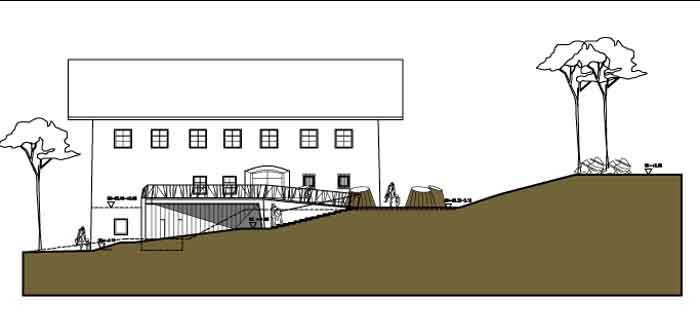 Erläuterung Der Aufgabenstellung einen Zubau zur bestehenden Volksschule zu realisieren, begegnet der Entwurf mit einer sehr untergeordneten Geste. Das Bestandshaus wird als dominanter Solitär erhalten. Die Sanierung mit neuen Fenstern und Vollwärmeschutz verändert das Aussehen des Hauses nicht. Um mit der großen Kubatur nicht die Außenraumqualitäten zu zerstören, wird der Zubau , den Geländesprung ausnutzend, größtenteils unter die Erde gesetzt. Damit wird , auf der Ebene des bestehenden Schuleinganges eine erweiterte Pausenfläche für die Schüler geschaffen ; der Garten im Westen bleibt unangetastet und als Freiraum erhalten. Die Betondecke wird im südlichen Bereich des Zubaues leicht schräg nach oben angehoben um einen verbesserten Lichteinfall zu erreichen. Gleichzeitig werden, an der Oberfläche größflächige „Sitz-stufen“ als Außenraumgestaltung hergestellt. Gemeinsam mit den „Lichtkuppeln“ , die der Belichtung des Turnsaales dienen, entsteht eine Art „Skulpturengarten“ , welcher den Schülern eine Vielfalt an Nutzungsmöglichkeiten bietet. Die Volkschule Leisach erhält somit eine Erweiterung, die sich in das bestehende Gelände und in die Ortlandschaft Leisachs einbindet.