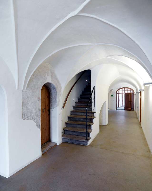 Umbau Haus Scheitz mit (Spiel)Stadel und Neubau einer Wohnanlage in Lienz, Osttirol Die gemeinnützige Bau- und Siedlungsgenossenschaft Frieden reg.Gen.mbH erwarb im Herzen von Lienz ein großes Grundstück, um einen Wohnbau zu errichten. Teil dieses großen Grundstückes ist im Norden, angrenzend zu einer historischen Straße, das sogenannte Haus Scheitz. Das Haus Scheitz geht in seiner historischen Struktur zurück bis ins 16. Jahrhundert. Der letzte große Umbau (Aufstockung) datiert um 1900. Das Gebäude, welches früher als Wohngebäude benutzt wurde, die letzten Jahre jedoch leer stand, weist im Erdgeschoß die typische Mittelgangstruktur mit Gewölbe auf, durch welche kleinere Fuhrwerke den Stadel dahinter erreicht konnten. Der Stadel zeugt von der bäuerlichen Geschichte der Liegenschaft. Der anschließende große Garten, in dem der Wohnbau errichtet werden sollte, stellte den Rest einer größeren landwirtschaftlichen Fläche, welche durch diesen Stadel bewirtschaftet wurde, dar. Im Laufe der Geschichte wurden diese landwirtschaftlichen Flächen immer weniger, der Stadel verlor seine Funktion und das gesamte Areal befand sich nun mitten im verbauten Stadtgebiet. Da das Haus Scheitz straßenseitig eine historische Stuckfassade aufweist und im Inneren die oben beschriebenen Gewölbe sehr gut erhalten sind, steht dieses Haus unter Denkmalschutz (innen wie außen). Es zeugt von sehr viel Engagement und Risikobereitschaft, dass sich eine gemeinnützige Wohnbaugenossenschaft solch eines Projektes angenommen, und die Teils unkonventionellen Ideen - wie den Spielstadel - umgesetzt hat, um das Gesamt-Ensemble zu bewahren. Planungsprozess – Neubau – Erhaltung des Stadels Um Wohnungen errichten zu können müssen gemeinnützige Bauträger eine gewisse Mindestwohnnutzflächendichte erreichen (lt. Tiroler Wohnbauförderung). Zunächst wurde angedacht den Stadel zu entfernen um diese Dichte erreichen zu können. Da der Stadel jedoch in recht gutem Zustand war und Teil des historischen Ensembles ist, konnte zwischen dem Wohnbauträger und der Stadt Lienz über eine Geschoßerhöhung des Neubaus die Dichte erreicht und der Stadel somit beibehalten werden. Da der Stadel wertvolle Grundstücksfläche besetzt, wurde nach einer adäquaten Nutzungsmöglichkeit gesucht. Im gemauerten Erdgeschoß wird er nun als Lager und Fahrradabstellplatz für die neue Wohnanlage verwendet. Im hölzernen Obergeschoß konnte nach Abklärung aller Sicherheitsvorschriften der Kinderspielplatz für die Wohnanlage eingebaut werden. Hier können die Kinder nun zum Teil im Dachstuhl herumklettern. Die beschädigten Holzbauteile wurden fachgerecht ausgetauscht. Aus der Holzverschalung des Obergeschoßes wurden teilweise Bretter in einem unregelmäßigen Rhythmus herausgenommen, sodass Licht und Luft für den Kinderspielplatz eintreten können. Somit konnte das Haus Scheitz mit dem Stadel als altes Ensemble komplett erhalten bleiben. Das Haus Scheitz selbst wurde zu Wohnungen umgebaut. Jene Flächen, die für Wohnungen schlechter geeignet sind (EG-nordseitig) wurden vom Bauträger selbst als Büro umgebaut und werden als Außenstelle in Lienz genützt. Somit konnte das gesamte Haus aktiviert werden. Haus Scheitz Die historische Straßenfassade sowie die inneren Putzoberflächen wurden von Fachfirmen denkmalpflegerisch untersucht und restauriert. Im Inneren wurden abgedeckte Malereien zum Teil freigelegt. Der Bestand wies Holztramdecken auf, die den Erfordernissen für Wohnungen in akustischer und brandschutztechnischer Sicht nicht mehr entsprochen haben. Nach Entfernung der historischen Bodenbretter (die wieder eingebaut wurden), wurden die Decken mittels einer Verbundbauweise verstärkt. Eine genaue Kartierung der historischen Türen und Fenster wurde gemeinsam mit dem Bundesdenkmalamt durchgeführt und jene Bauteile, die erhaltenswürdig waren, wieder in Bereichen der neuen Wohnungen nach fachgerechter Sanierung eingebaut. Alle neuen Einbauten wie Glastrennwände, neue Türen und Fenster wurden in Absprache mit dem Bundesdenkmalamt sehr zeitgemäß gestaltet. Besonderes Augenmerk wurde auf die südseitig gelegenen Holzbalkone gelegt. Diese wurden ab lackiert und mit Leinöl behandelt, morsche Bauteile fachgerecht ausgetauscht. Das bestehende Treppenhaus vom EG ins OG1 im Inneren entsprach nicht mehr den Anforderungen der geltenden Baugesetze. Um dieses nicht wegreißen zu müssen, wurde eine neue Außentreppe in passender Holzbauweise zu den Holzbalkonen errichtet. Sämtliche Wohnungen und Büros im Haus entsprechen nach Restaurierung dem aktuellen Stand der Technik. Neue Wohnanlage Die neue Wohnanlage gliedert sich auf in drei Gebäude, um den städtebaulichen Maßstab des Bestandes aufzunehmen. („Stadtvillen)“ Die Farbgebung der neuen Gebäude lehnt sich ebenfalls an den Bestand an. Die Balkone der Wohnbauten wurden als Referenz zu den hölzernen Balkonen des Bestandes und des Stadels in Holz, allerdings in zeitgemäßer Bauweise, errichtet. Diese Balkone bilden 3-dimensionale “Bilderrahmen“, innerhalb deren sich jeder Bewohner seinen Balkon individuell selbst gestalten kann. Holzverkleidungen sind ebenso möglich wie Glas, textile oder sonstige Bauteile für Witterungs- und Sichtschutz. So soll sich das Leben der Menschen mit der Zeit nach außen manifestieren.